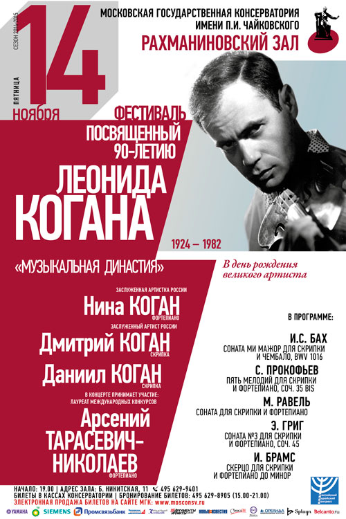 Нина Коган (фортепиано), Дмитрий Коган (скрипка), Даниил Коган (скрипка), Арсений Тарасевич-Николаев (фортепиано),